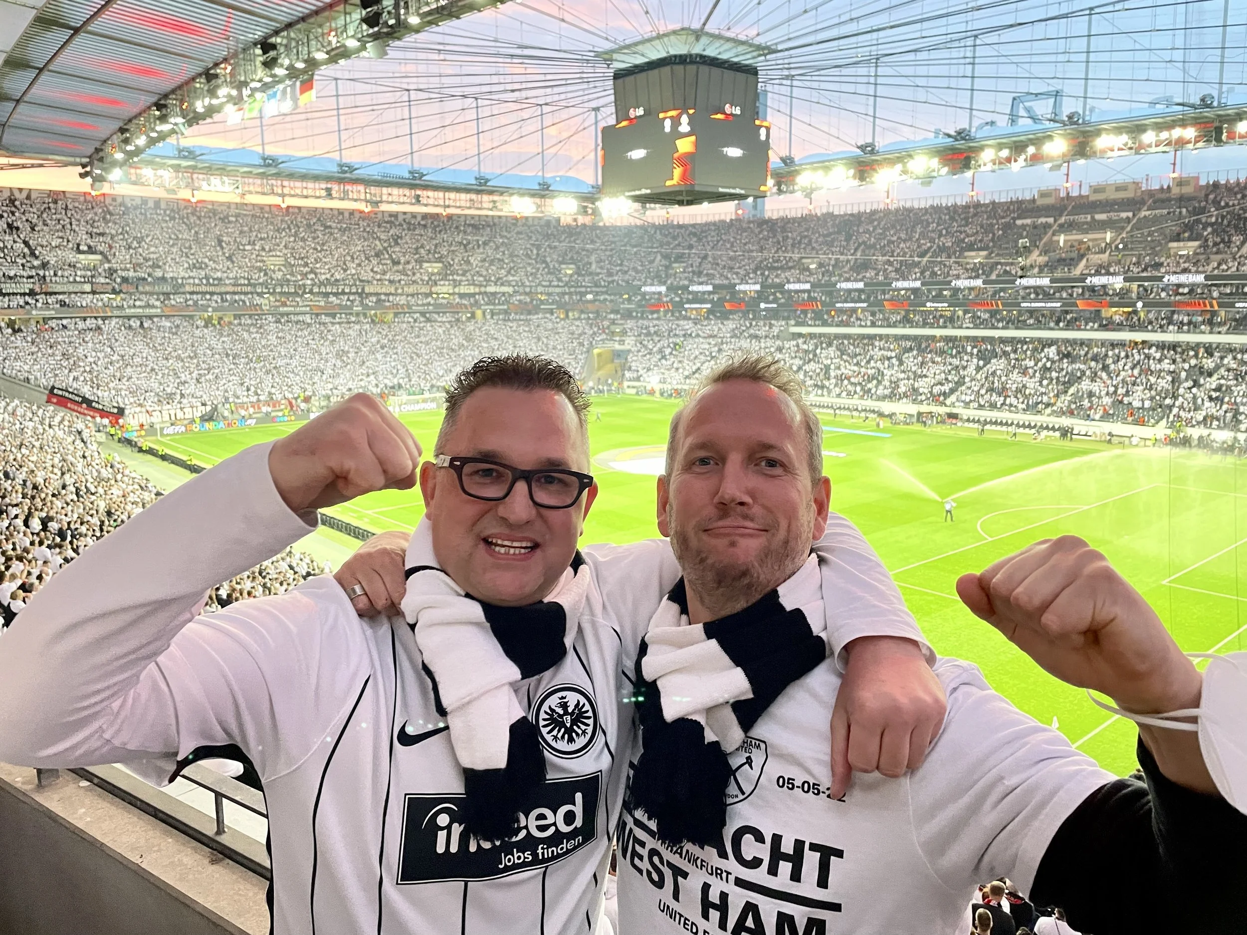 Unsere Herzen schlagen Schwarz-Weiß-Rot. Unsere Kehlen trinken goldenes Stöffsche. Unsere Heimat ist das Waldstadion. Und seit 2023 ist unser großartiger Eintracht-Freundeskreis offizieller Fanclub von Eintracht Frankfurt.